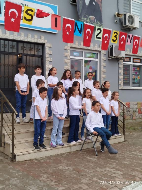 Okul Müdürü Saffet KAYA'nın açılış konuşması ile başlayan 23 Nisan Ulusal Egemenlik ve Çocuk Bayramı büyük bir coşkuyla kutlandı. TBMM'nin açılışının 105. Yıldönümü olan ve çocuklara Mustafa Kemal ATATÜRK tarafından bayram olarak hediye edilen 23 Nisan şenliği yarışmalar, oyunlar ,şiirler ile eğlenceli bir bayram kutlandı. Velilerin de yoğun katılım sağladığı görüldü.